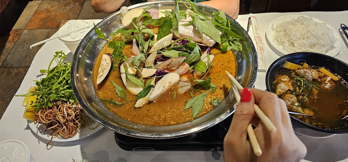 “Lẩu mắm” is the best one I ever had in US. The other dishes are very good too. We ordered razor clams with water spinach, “ốc len xào dừa”, “sụn gà chiên mắm”…every thing is fresh and tasty. Definitely I will come back the next time I traveled to OC. The service is great, the servers are attentive and the owner is nice as well.